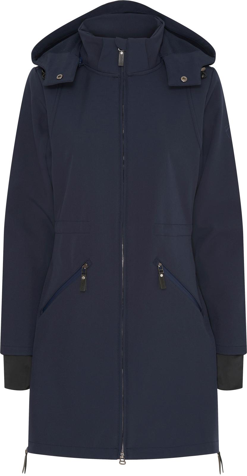 Elegant skræddersyet langærmet frakke med trekvart længde, der kombinerer alle fordelene ved en softshelljakke og en parkacoat i ét funktionelt stykke.