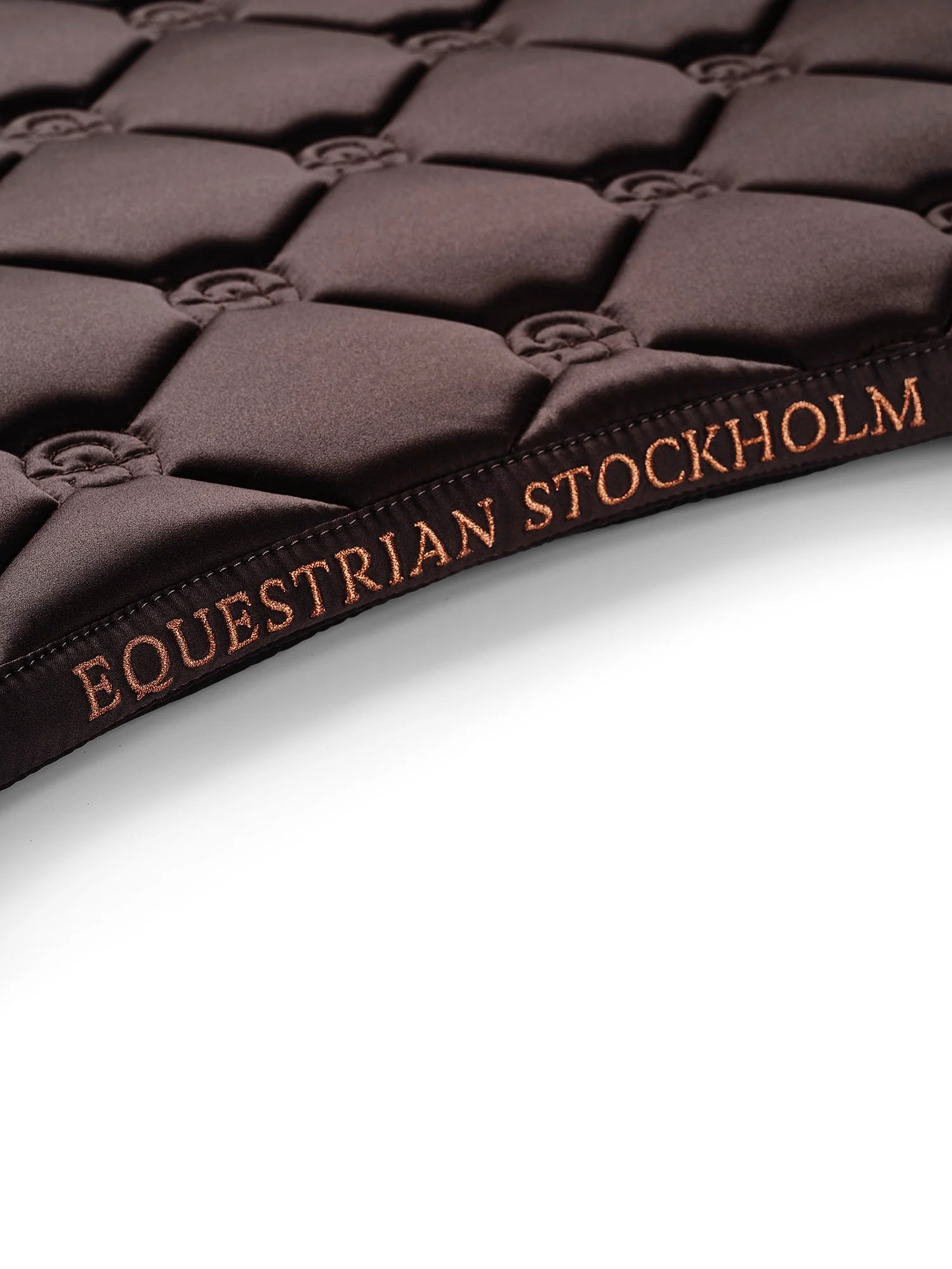 Underlaget er dekoreret med det ikoniske Equestrian Stockholm badge i rose gold metal, som understreger det luksuriøse udtryk.