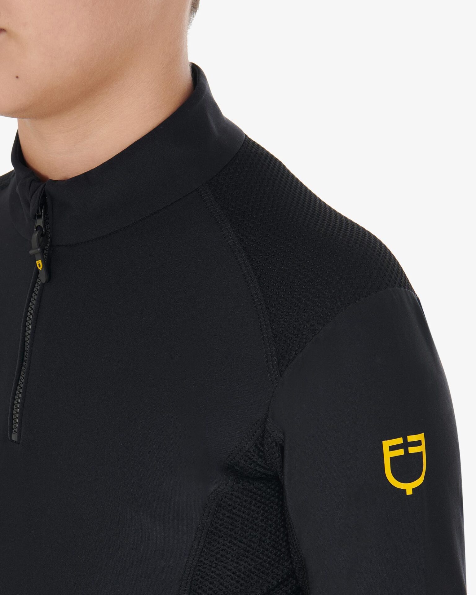 Tøjet er udsmykket med en lynlås lukning med vindtæt system og Equestro logo på venstre skulder.